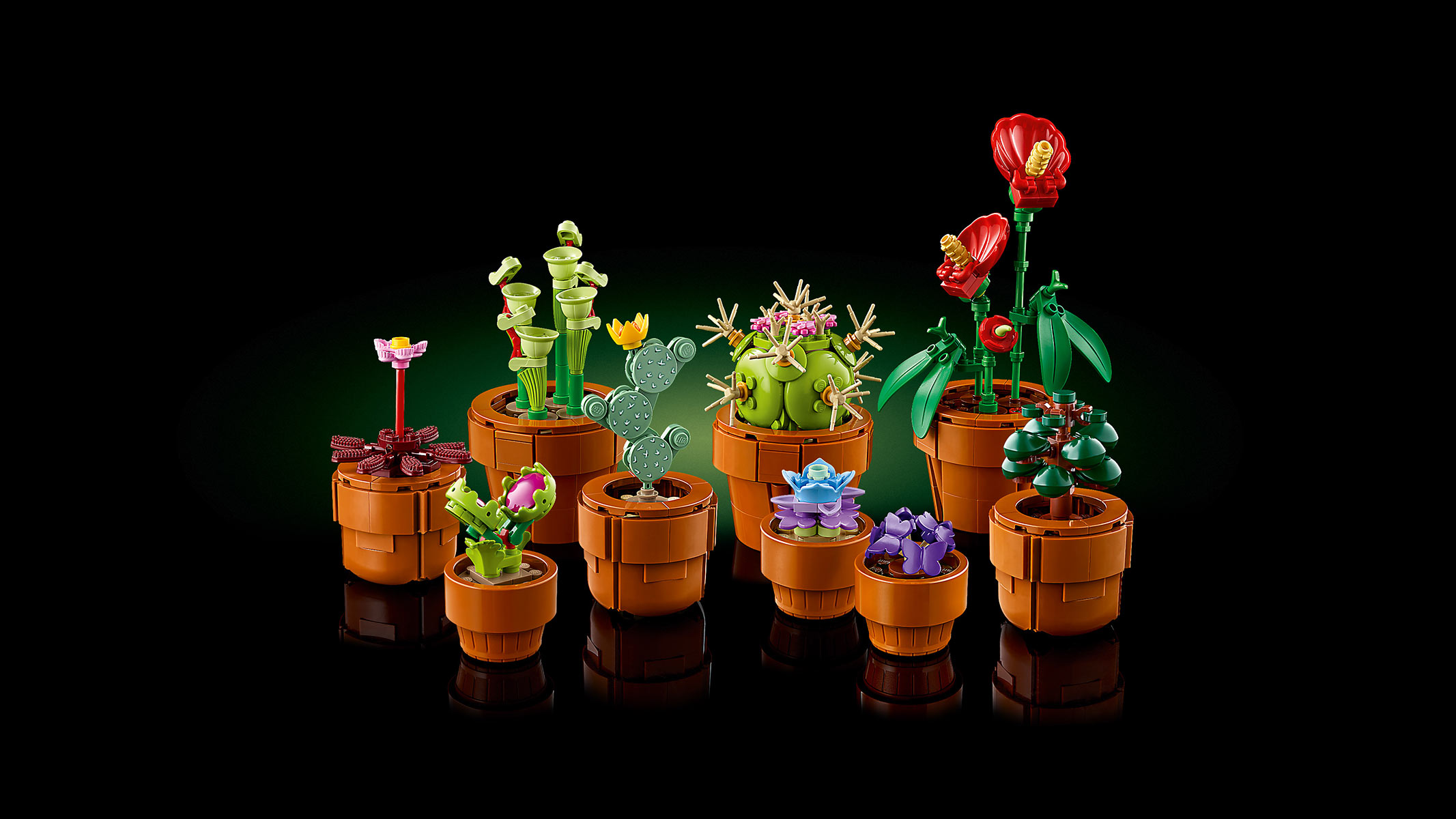 Razvijajte kreativnost uz LEGO® Icons Sićušne biljke (10329) – projekat gradnje za odrasle. Izgradite 9 modela biljaka zasnovanih na suvim, tropskim i mesožderskim vrstama, od kojih je svaka posađena u saksiju za cveće koja se gradi, u boji terakote. Izaberite različite modele za lak, srednji i napredni nivo složenosti gradnje, i obogatite svoj prostor živopisnim savremenim ukrasom.