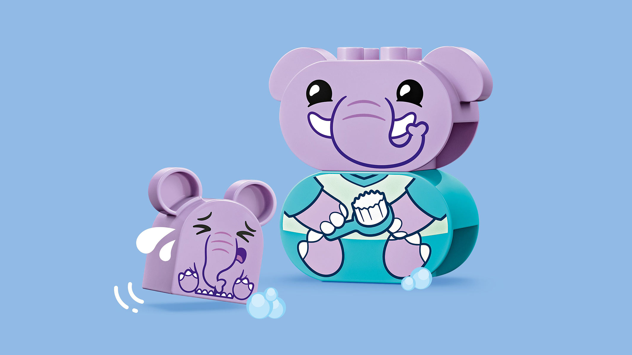 • Edukativna igračka za mališane – Uključene su 2 igračke slona, kao i WC šolja, kada i tuš izgrađeni od izdržljivih LEGO® DUPLO® kocaka i elemenata za igru zabavnih rutina kupanja