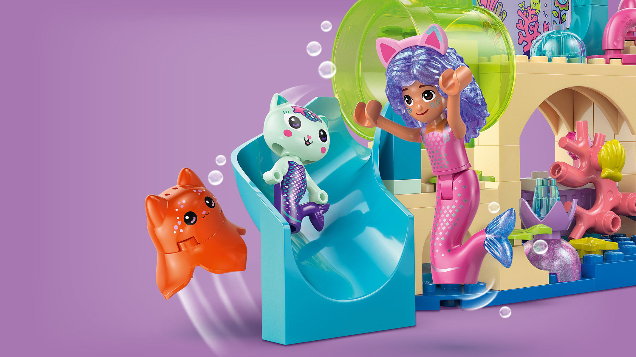 Zaronite u Gabinu podvodnu avanturu sa Mačkorenom i raznobojnom Meduzom! Gabi nosi odeću sirene i spremna je da istraži šareni akvarijum ispunjen školjkama, biljkama i divnim morskim životom. Pridružite se prijateljima dok se spuštaju prskajući niz tobogan i lebde u džinovskom balonu, a zatim potražite školjke i pomerite koral da biste otkrili skriveni kovčeg sa blagom – baš kao u filmu!