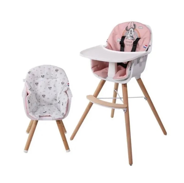 - Visoka stolica ima podesivi pojas u 5 tačaka kako bi se osigurala bezbednost deteta kada seti. Noge stolice su napravljene od drveta i opremljene neklizajućim podlogama.