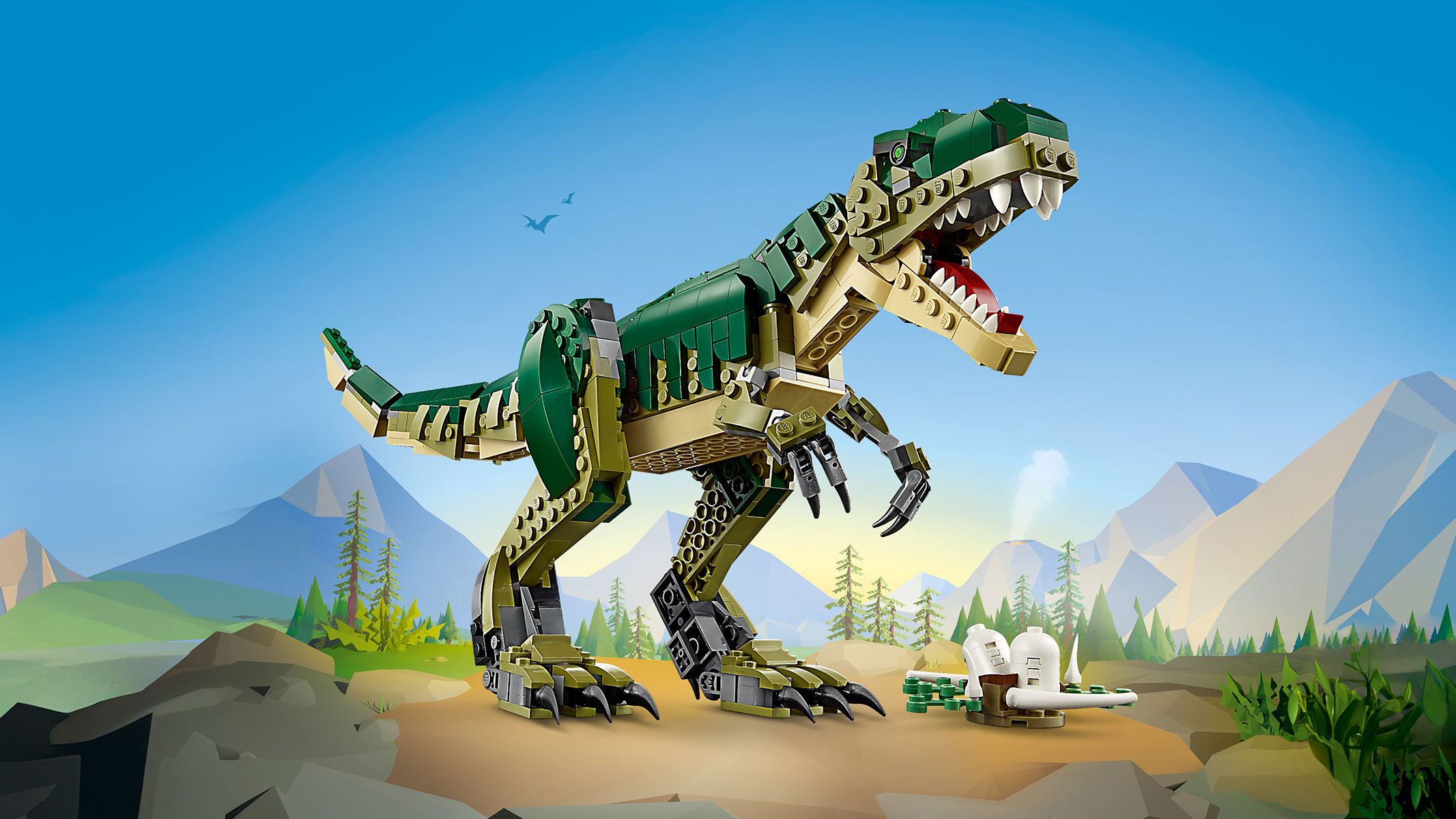 • 3 igračke dinosaurusa u jednom kompletu – LEGO® Creator Ti-reks komplet za igru omogućava dečacima i devojčicama uzrasta 9+ da grade i prepravljaju 3 različite igračke životinje od istog kompleta kockica