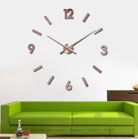 3D Zidni Sat samolepljivi - Bakarni T4325C