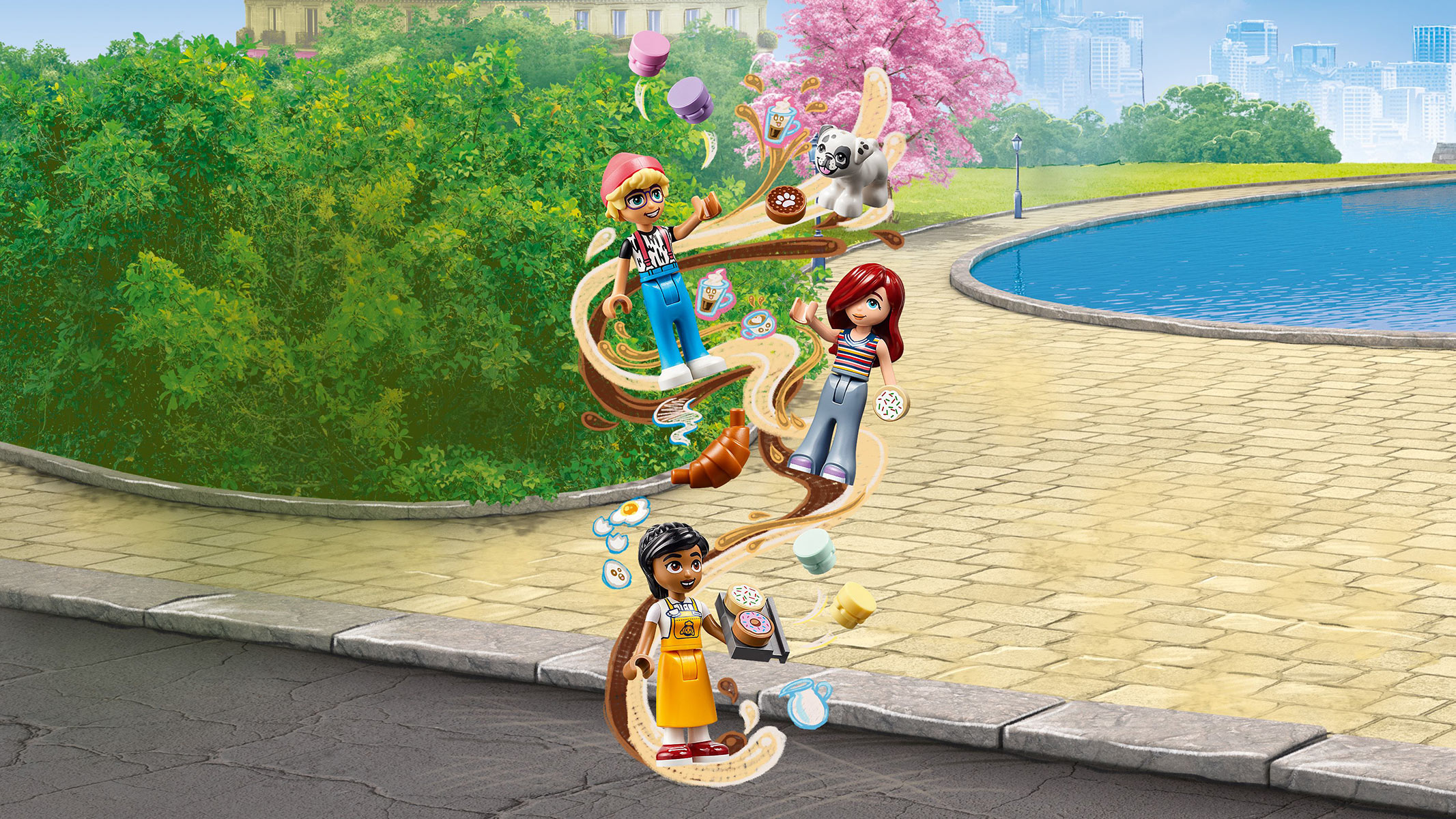 • Mnoštvo dodataka – Ovaj LEGO® komplet ide uz igračke dodatke, uključujući makarunse, kroasan, skuter, kacigu, kutiju za isporuke, pseću činiju, trofej i metlu, koji ga čine zabavnom igračkom za igranje uloga