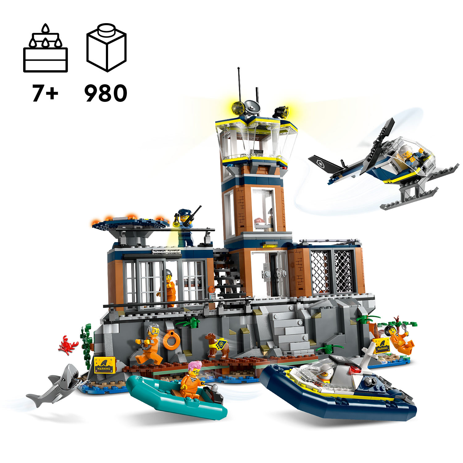 Napetost raste na zatvorskom ostrvu gde najtraženiji LEGO® City kriminalci planiraju jedno od najvećih i najhrabrijih bekstava u istoriji! Dok novi zatvorenici stižu policijskim gliserom, ostali zatvorenici su zauzeti svojim planovima. Nadgledaj sa kontrolnog tornja i pažljivo motri na policijski helikopter – ovaj zatvor nije tako siguran kao što se čini! Da li je to zvuk kopanja?