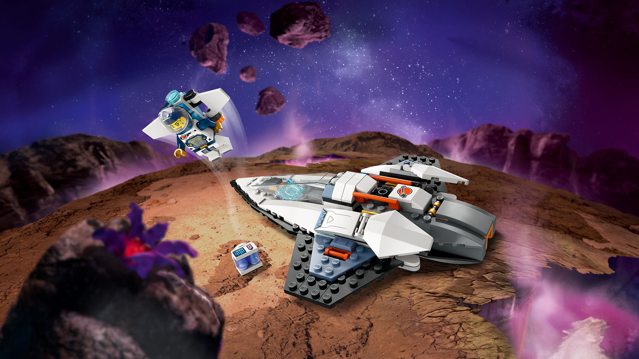 Uključi glavne propelere, prebaci se na brzinu svetlosti i otputuj u daleke krajeve svemira na hipersoničnom međuzvezdanom svemirskom brodu. Transformiši dron u moćnu letelicu na mlazni pogon za smele šetnje svemirom i istraživanje planete. Uživaj u neograničenim međugalaktičkim avanturama uz LEGO® City svemirsku posadu.