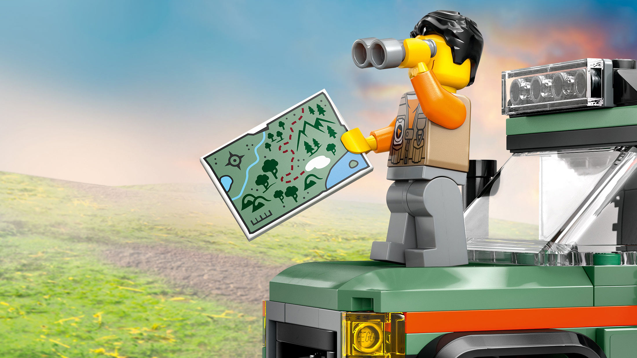 • Komplet vozila sa pregršt dodataka za LEGO® mini-figure – sadrži igračku foto-aparat, flašu vode, baterijsku lampu, mapu, kompas, dvogled, alate i komplet prve pomoći za igru pretvaranja