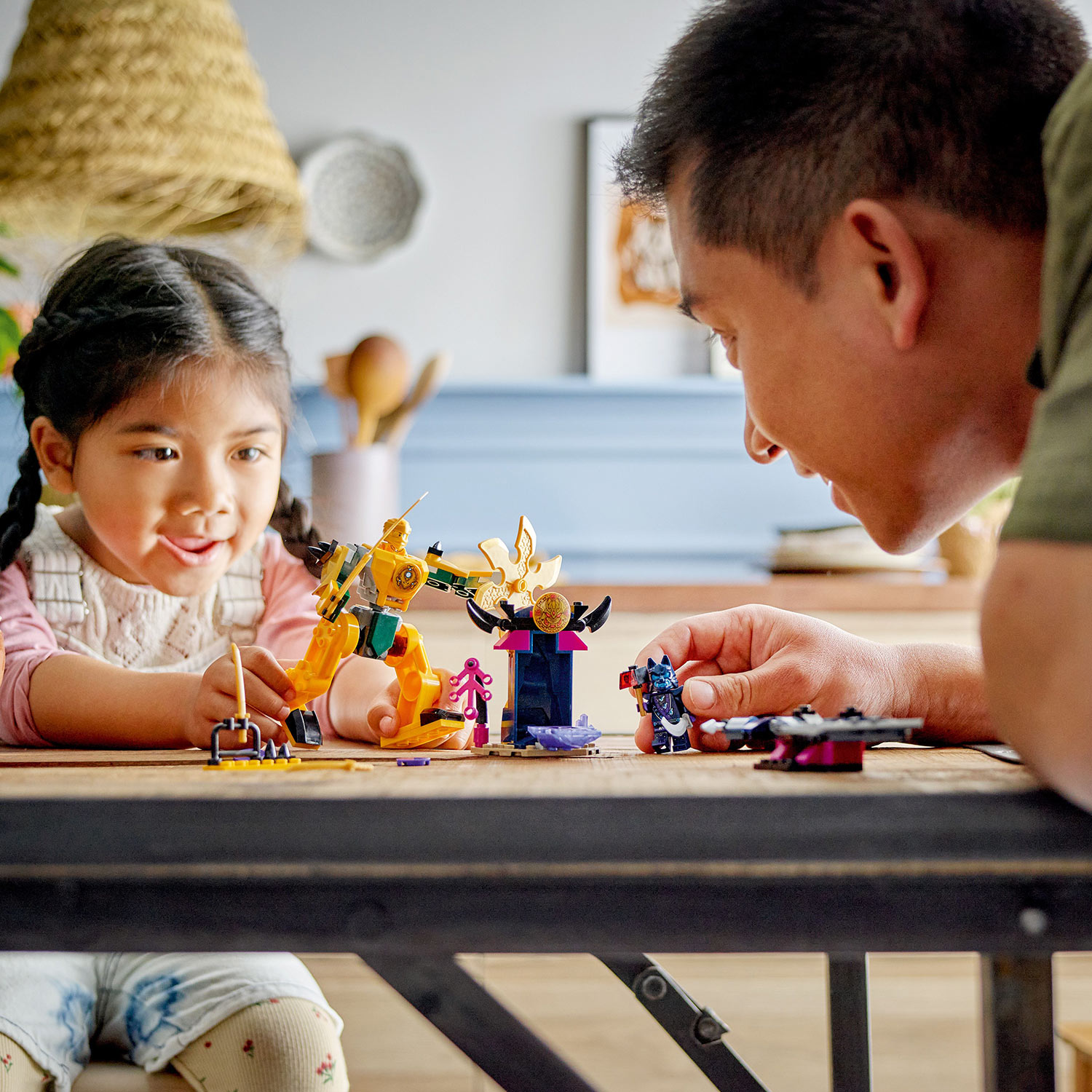 • 2 LEGO® NINJAGO® mini-figure – Nindža komplet za igru sadrži mini-figuru Arina naoružanog dodatkom katanom da bi deca mogla da igraju uloge akcije protiv Ratnika s maskom vuka sa njegovim mačem