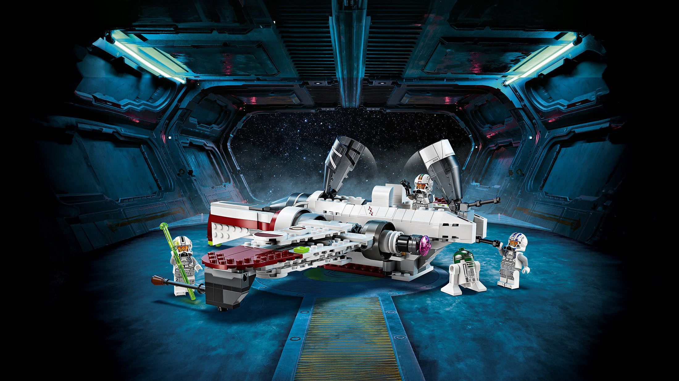 Komplet sa svemirskim brodom koji se gradi sadrži 4 LEGO Star Wars junaka. LEGO mini-figure klona pilota Čudaka, klona pilota Džega i klona pilota mogu se postaviti u kokpite, a u njima ima mesta i za LEGO figuru droida R4-P44.