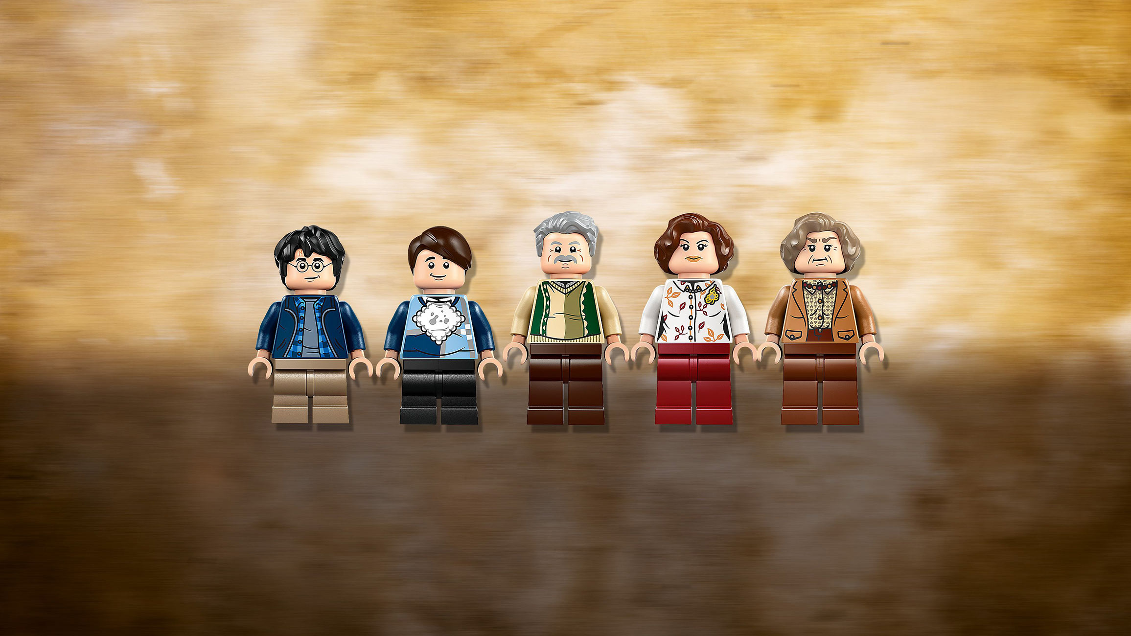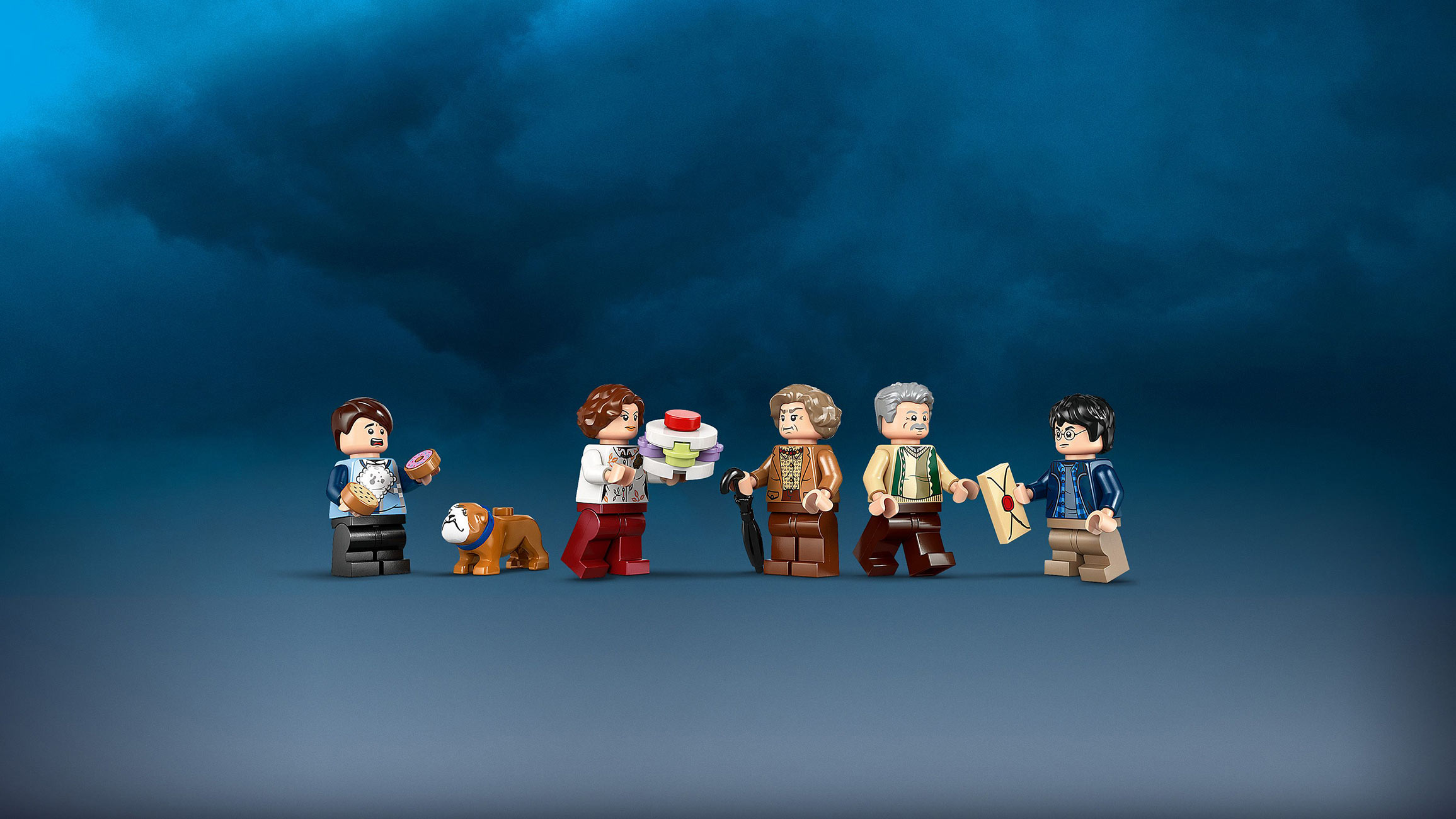 • 5 LEGO® Harry Potter™ mini-figura – Mardž Darsli, Vernon Darsli, Petunija Darsli, Dadli Darsli, Hari Poter, kao i figura začarane tetke Mardž i figura psa Trboseka