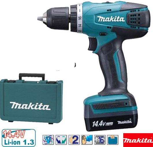 Makita akumulatorska bušilica odvijač sa brzosteznom glavom koja omogućuje lako postavljanje i uklanjanje umetka, jednom rukom. Metalna konstrukcija svih zupčanika obezbeđuje visoku izdržljivost sa prenosnim kućištem koje kompletno pokriva zupčanike, čime povećava otpornost na prašinu. Ergonomski dizajnirana drška, sa gumiranim mekanim rukohvatom, obezbeđuje udobno držanje i veću kontrolu, a minimizuje umor i bol u rukama
