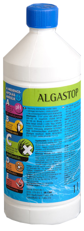 Algastop je tečna hemikalija za sprečavanje stvaranja i uništavanje razmnoženih algi. Značajna je dopuna hlornoj dezinfekciji vode. Preporučuje se protiv zelenih algi. Aktivna materija alkil-dimetril-benzil-amonijačni hlorid. Prvo doziranje 200-400 ml na 10m3 vode; Kontinualno doziranje nedeljno 50-150ml na 10m3 vode