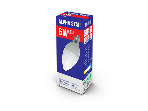 Alpha Star E14 6W NB LED Sijalica 4000K,480Lm,sveća-minjon,220V,Bela