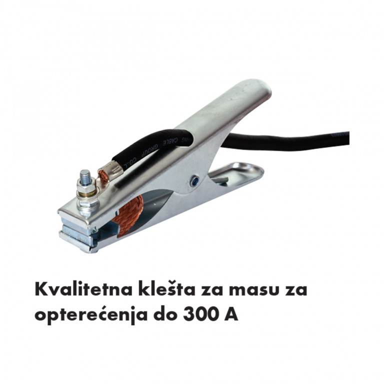 - Težina aparata je 4,6kg, a kablovi za masu i klešta za elektrodu su dužine 3 m.