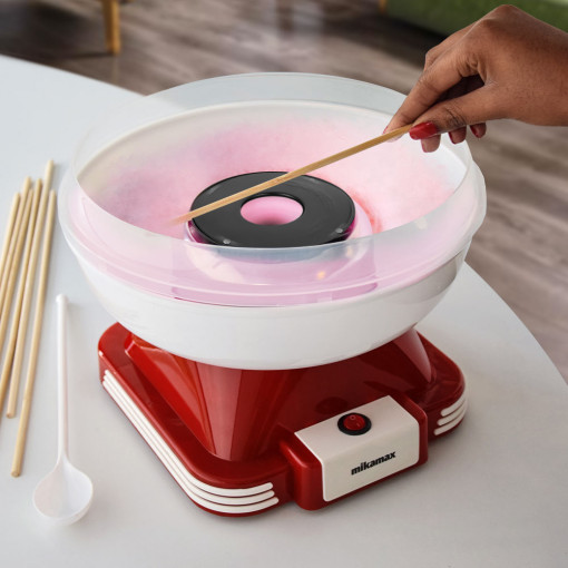 Aparat se vrlo lako sastavlja i koristi, treba da je uključiti da se zagreje 1-2 minute, potom je isključite i sa plastičnom kašikom dodajete šećer, ponovo je uključite i posle par sekundi kreće magija, počinju da se stvaraju mali slatki oblačići. Vertikalno držite štapić kada skupljate niti šećerne vune, okrećući ga pristima u krugovima u slatkoj mašini oko grejača. Kada se nakupi dovoljno slatke vune okrenite štapić horizontalno i nastavite ga okretati hvatajući niti šećerne vune. Dozvolite mašini da se ohladi makar 5 minuta nakon pravljenja 5 tura šećernih štapića.Za pravljenje šećerne vate možete koristiti običan šećer ili se pak malo potruditi pa sami obojiti šećer prehrambenom bojom i dodati neke arome po želji.Odlična zabava za celu porodicu i savršen dodatak za žurke.