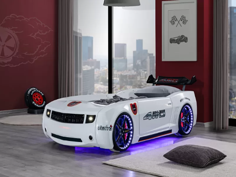 Auto krevet CAMARO FULL LED MS PREDNJA SVETLA, LED NA TOČKOVIMA I PODNI LED, ZVUČNI EFEKTI SA DALJINSKIM UPRAVLJAČEM,LETVIČASTA PODLOGA ZA DUŠEK. * Dimenzija: Š:122cm D:250cm V:75cm Predviđena dimenzija dušeka: 190cm*90cm*20cm Autokrevet mozete poruciti u beloj,crvenoj,crnoj i plavoj boji, kao i podizni mehanizam sa boxom za posteljinu koji nije u ceni,kao dodatnu opciju. * Karakteristike: Prednja svetla Led na točkovima I podni led Zvučni efekti sa daljinskim upravljačem Letvičasta podloga za dušek ABS plastika Zadnje sportsko krilo (spoiler) Krevet je izrađen od univera u kombinaciji sa ABS plastikom koja se koristi u medicinskoj i prehrambenoj industriji. Svi naši kreveti su izrađeni od ekološkog materijala, po standardu ISO 9001. ABS plastika je obložena bezopasnim akrilnim premazima. Ortopedska letvičasta podloga za dušek obezbeđuje udoban i besprekoran san. Svetla rade na adapter od 12V koji je potpuno bezopasan, ulaz adaptera je sakriven i deca ne mogu doći do njega. Farovi su idealni kao noćna svetla i daju posebnu atmosferu dečijem prostoru za igru i odmor. Krevet je dizajniran za težinu do 120kg. * Napomena: Dušek nije ukljucen u osnovnu cenu kreveta,a kompletnu ponudu mozete naci u kategoriji:Duseci Troškovi montaže i transporta nisu u ceni.