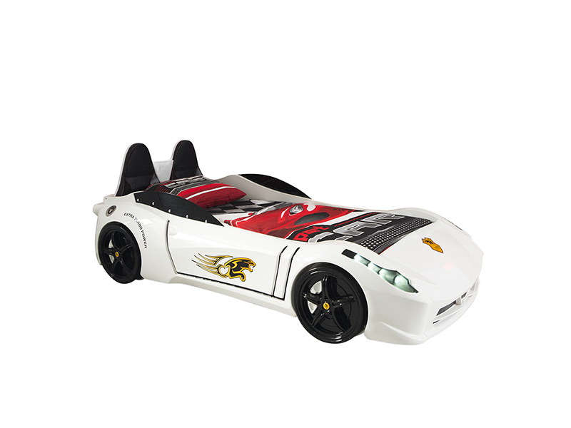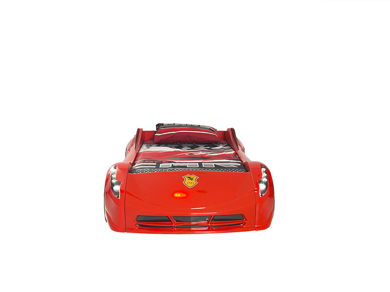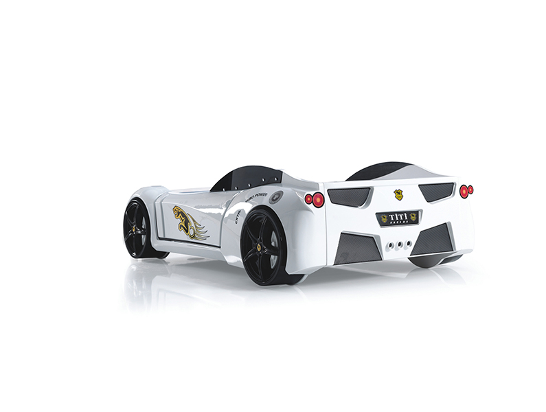 Auto krevet Titi TIT Dimenzije: Š:235 cm D:135 cm V:62 cm Auto krevet Titi TIT napravljen od ABS plastike prefarbane akrilnim premazima,po standardu ISO 9001 sa kombinacijom kvalitetnog univera presvučenog melaminskom folijom u boji. Karakteristike: Zvukovi motora i LED svetala koja se mogu kontrolisati daljinskim upravljačem. Led crveno svetlo ispod prednjeg branika. Plastični dodaci u obliku prozora na obe bočne strane auto kreveta. Daljinski upravljač (upravljanje svetlima i zvukovima) 4 različite muzike sa daljinskog upravljača (motor, vitez jahač, klik klik, trkački automobil). Ima ga u crvenoj ,beloj i crnoj boji. Kao dodatne opcije koje nisu u ceni mogu se poručiti spojler i dve vrste sedišta - naslona. Izrađen je za dimenziju dušeka: 190cm*90cm*20cm * Napomena: Dušek nije ukljucen u osnovnu cenu kreveta,a kompletnu ponudu mozete naci u kategoriji:Duseci Troškovi montaže i transporta nisu u ceni.