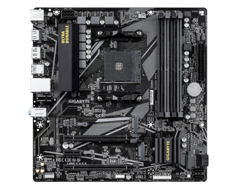 Osnovne karakteristike - Procesorsko ležište (socket): AMD AM4 Čipset: AMD B550 Grafika: AMD Radeon Memorija - Tip memorije: DDR4 Memorijski slotovi: 4 Podržane memorije: Podržava DDR4 memorije do 4.733MT/s (O.C.) Maksimalna ukupna memorija: 128GB Ostale osobine: Dual Channel,Podrška za Extreme Memory Profile (XMP),Podrška za non-ECC UDIMM memory,Podrška za Unbuffered ECC memoriju Slotovi - PCI Express x16 slot: 1x PCI Express 4.0/3.0 (x16 mode) PCI Express x4 slot: 1x PCI Express 3.0 (x4 mode) PCI Express x1 slot: 1x PCI Express 3.0 Skladišni interfejs - SATA priključci (ukupno): 4 SATA priključci: SATA III 6Gbps Broj M.2 slotova: 2 Podržani M.2 formati: 1x 2280 (podrška za PCIe 3.0 x2 mod),1x 2280 (podrška za PCIe 4.0 x4/x2 i SATA modove) Ostali skladišni interfejs: 2 x M.2 (socket 3) RAID: RAID 0,RAID 1,RAID 10 Mreža - Žična mreža (LAN): 1000Base-T (Gigabit) Model: Realtek Audio - Broj kanala: 2/4/5.1/7.1 Model: Realtek ALC1220 Audio Codec Napomena: Audio Noise Guard,High Definition,Premium audio capacitors Priključci na zadnjem panelu - Broj DisplayPort priključaka: 1 DisplayPort priključci: 1x DisplayPort Broj HDMI priključaka: 1 HDMI priključci: 1x HDMI PS/2: 1 (tastatura ili miš) Ukupno USB priključaka: 6 USB-A priključci: 2x USB 2.0,4x USB 5Gbps (3.2 Gen 1) RJ-45 (LAN): 1 Audio: 3x 3.5mm Unutrašnji priključci - Naponski priključci: 1 x 24 pin ATX Power Connector,1 x 8-pin ATX 12V power connector USB-A: 1 x podrška za 1 USB 2.0 port,1 x podrška za 1 USB 5Gbps port USB-C: 1 x podrška za 1 USB 5Gbps port Audio: 1x Front panel audio Serijski port: 1 Ostali priključci: 1 x Clear CMOS jumper,1 x CPU cooler LED strip/RGB LED strip header,1 x CPU fan header,1 x front panel audio header,1 x front panel header,1 x Q-Flash Plus button,1 x serial port header,1 x Trusted Platform Module (TPM) header,2 x addressable LED strip headers,2 x M.2 Socket 3,2 x RGB LED strip headers,2 x system fan headers,4 x SATA 6Gb/s Napomena: Za iskorišćavanje određenih internih konektora potrebni su dodatni bracket-i ili priključci na kućištu Ostale karakteristike - Podržane tehnologije: AMD StoreMI technology,Easy Tune,GIGABYTE Patented Double Locking Bracket,LAN bandwidth management software,Norton Internet Security (OEM verzija),Q-Flash,Q-Flash Plus,RGB Fusion 2.0,Smart Backup,Smart Fan 6,System Information Viewer,VRM Thermal Armor Advanced Fizičke karakteristike - Format: microATX Dimenzije: 244mm x 244mm Reklamacioni period - Reklamacioni period: 36 meseci