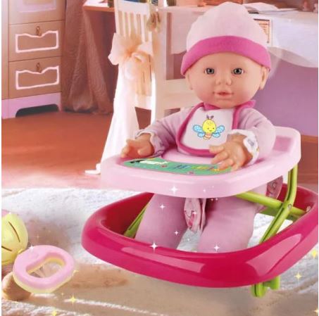 - Smesti je u dubak i daj joj zvečkicu! Igrajte se raznobojnim kockicama a kada ogladni stavi joj portiklicu! Ide vam se u šetnju? Stavi Bambolina bebi kapicu i zakači kanapčić za dubak pa je povuci u šetnju! Izgleda kao da će svakog časa prohodati!