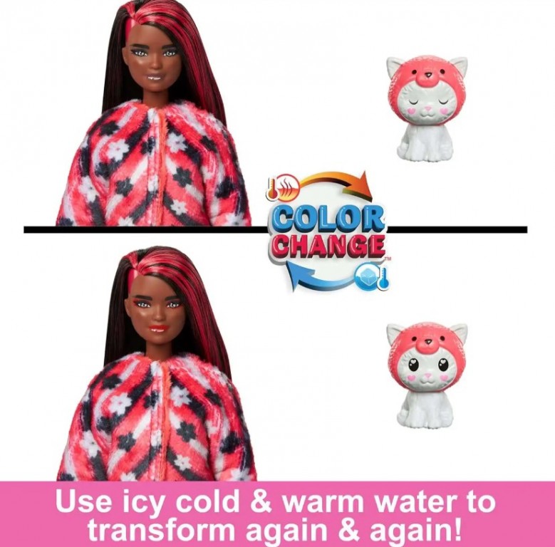 - Barbie Cutie Reveal animal, lutka u kostimu sa ljubimcem i aksesoarima. Ispod kostima ima ceo drugi outfit.
