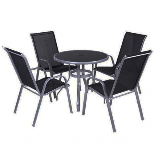 - Baštenska garnitura Como crna - 4 Stolice i Sto Sa Staklom