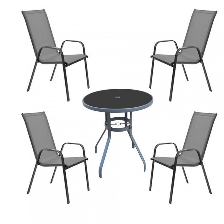 Baštenska garnitura Como Siva - 4 Stolice i sto sa staklom