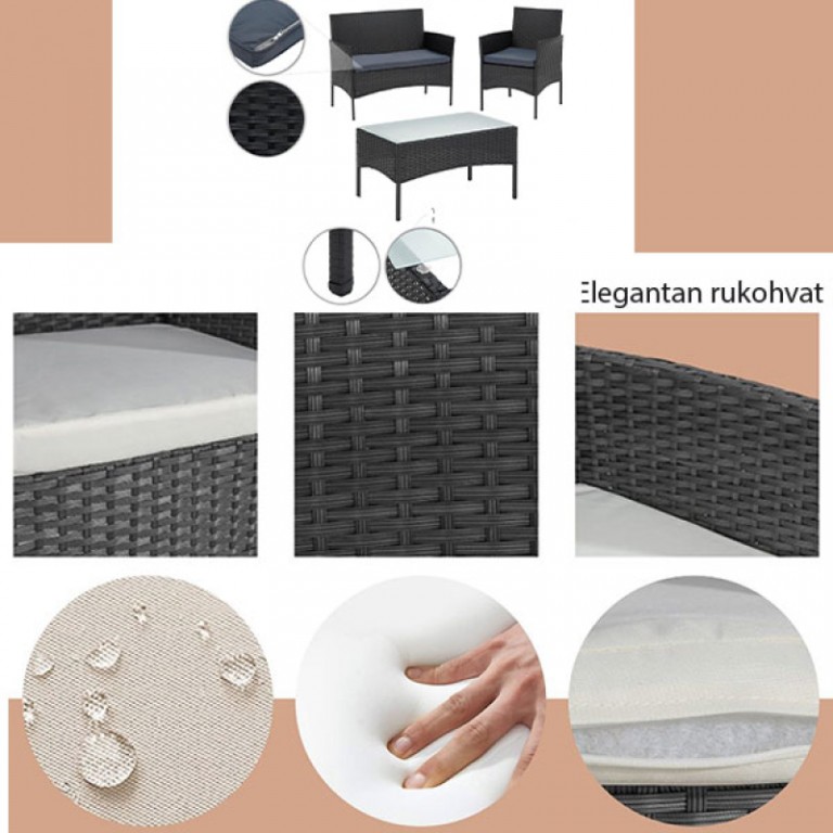 - Baštenska garnitura crna Bay 22-6210B je garnitiura od PE ratana, savršena za baštu, terasu, vrt, unutrašnju terasu, kao i za apartmane, hotele.