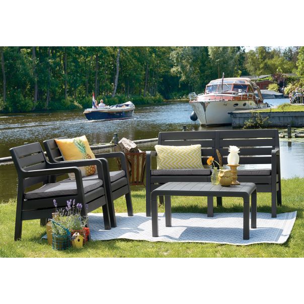 Izrađen je od kvalitetne, vremenski otporne plastike koja odoleva kiši, suncu i temperaturnim promenama, što ga čini idealnim za dugotrajnu spoljašnju upotrebu. Održavanje je jednostavno — dovoljno je prebrisati površinu krpom ili isprati vodom. Udobni jastuci dodatno doprinose komforu, omogućavajući opuštanje i uživanje tokom celog dana, dok stabilna konstrukcija garantuje sigurnost i dug vek trajanja.