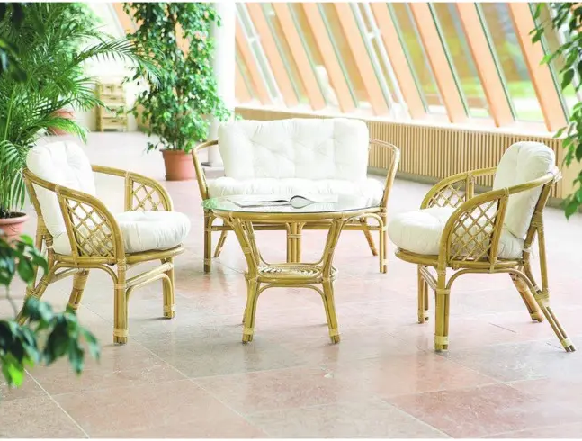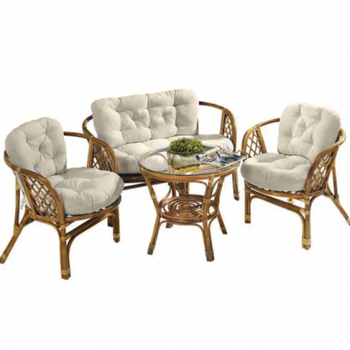 Odličan dizajn i izvanredan kvalitet izrade odlikuju ovu baštensku garnituru. Garnitura je u potpunosti napravljena od materijala koji su prirodni. Ram garniture je deblji u odnosu na slične modele, izrada je preciznija a boja i lak su nanešeni sa odličnim odnosom neophodne zaštite, dobrog dizajna i zadržavanjem prirodnih svojstava ratana. Izgledom i funkcionalnošću namena ove garniture je korišcenje i ukrašavanje kako spoljnog prostora, dvorišta i terase tako i enterijera predsoblja, dnevne i radne sobe.