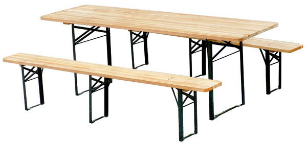 Baštenska garnitura koju čije sto i 2 stolice i sto. Klupe imaju 3 nogare ojačene protiv lomljenja. Prirodna boja drveta lakirana