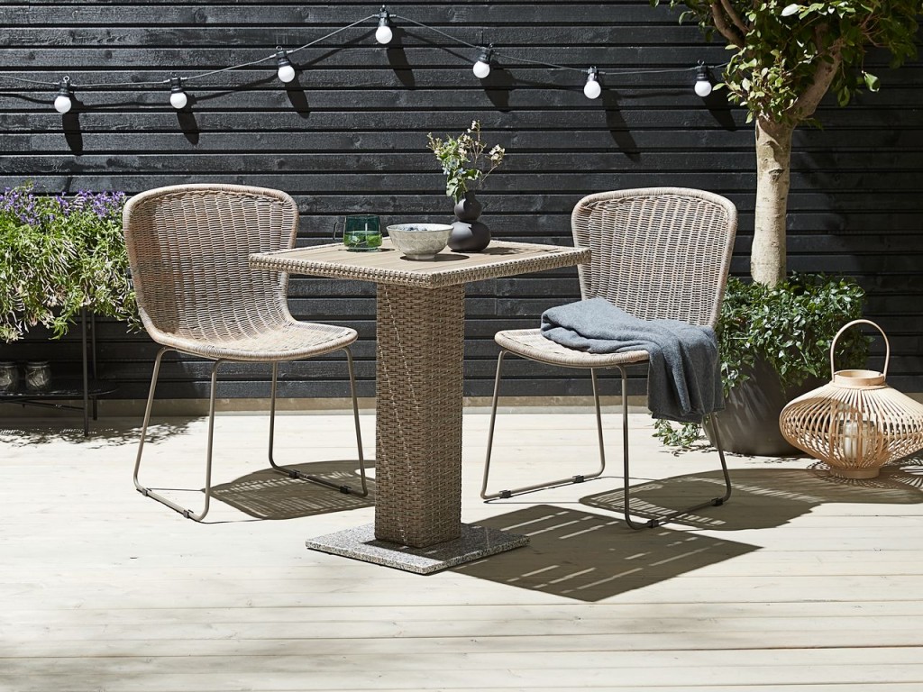 - Materijal: Ram aluminijum i granit, površina stola veštačko drvo, noge aluminijum plus petan