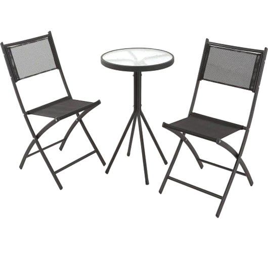 Praktična baštenska garnitura sa dve sklopive stolice i stolom sa pločom od kaljenog stakla