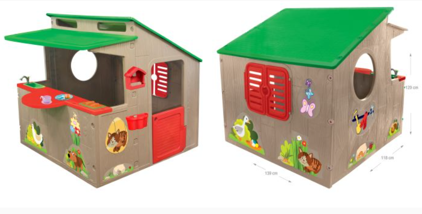 - Kućica je pogodna za upotrebu unutar a naravno i van kuće. Izrađena je od kvalitetne livene plastike čvrste i jake konstrukcije.