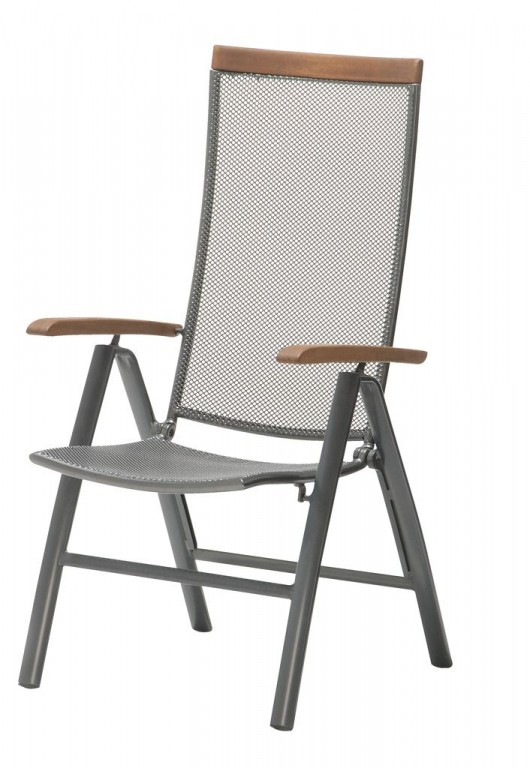 Baštenska stolica Larvik ima mogućnost podešavanja naslona u 5 pozicija. Izrađena je od kombinacije aluminijuma i čelične mreže. Sa 4-slojnim premazom za zaštitu od rđe. Nasloni za ruke kao i ivice naslona izrađeni su od FSC-tvrdog drveta. Stolica je sklopiva zbog lakšeg odlaganja.