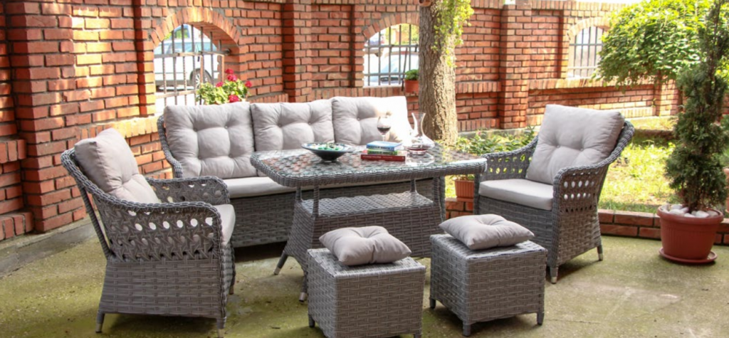 - 2 taburea, stola, jastuka I zastitnog stakla za sto.