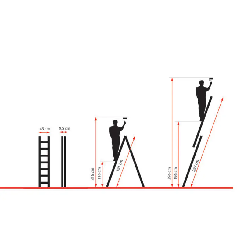 Radna visina za samostojeći 2-delni: 3,16 [m]