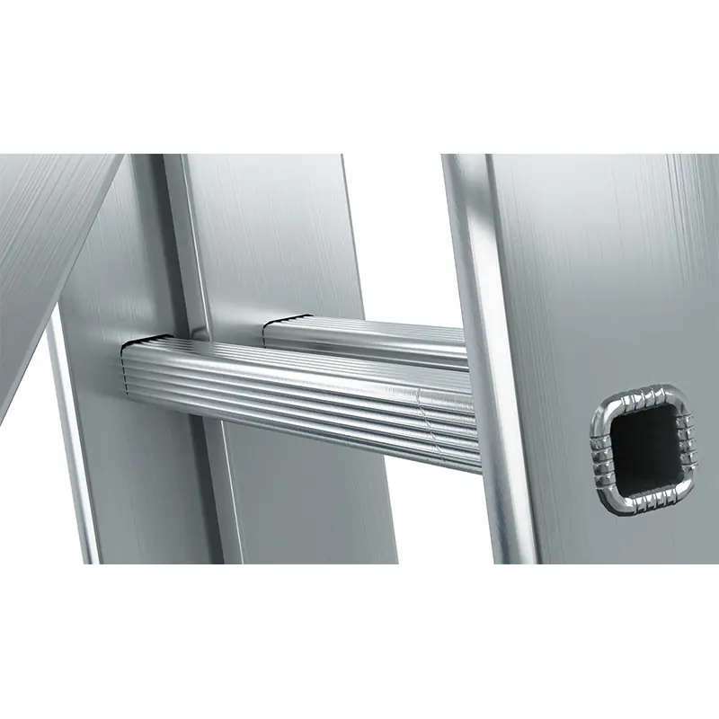 Merdevine imaju užlebljene prečke i neklizajuće noge koje obezbeđuju stabilnost na neravnim površinama. Inovativne vođice i automatsko zaključavanje segmenta omogućavaju praktično rasklapanje i preklapanje merdevina.