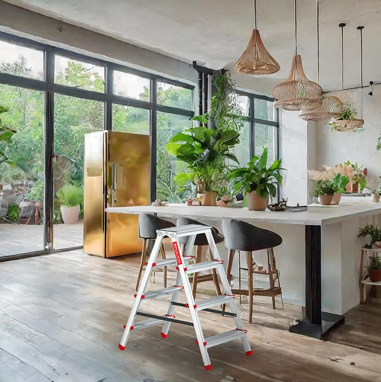 - Merdevine su opremljene užlebljenom, neklizajućom platformom koja omogućava udoban i bezbedan rad na merdevinama.