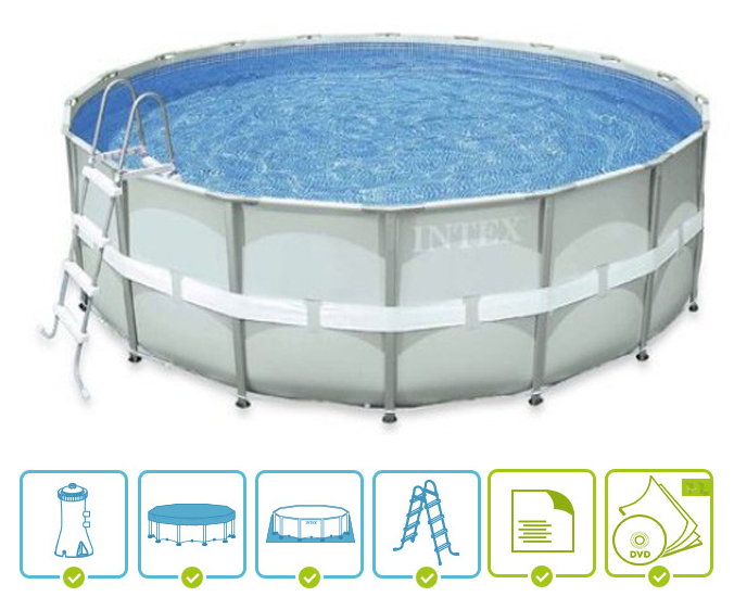 Izuzetno snažan i kvalitetan bazen koji će vam dugo trajati. Ultra Frame bazeni jesu premium linija najpoznatijeg proizvođača bazena Intex. Ultra ojačani, garantuju vam dugotrajnost i pouzdanost bazena. Nosači su izrađeni od čelika i dodatno su zaštićeni posebnim slojem od rđanja. Bazen se lako montira, potrebno je da pratite upustvo i naša preporuka je da radite u paru. Samo korito bazena izrađeno je od izuzetno čvrstih i otpornih materijala tako da bazen možete koristiti više godina. Neophodno je da ga pravilno održavate. U tome vam može pomoći neki od proizvoda iz opreme za bazene. Takođe, postavljanjem podloge i prekrivača dodatno obezeđujete dugovečnost vašeg bazena ali kvalitet vode. Korišćenje pumpe koju dobijate uz bazen učiniće vam održavanje lakšim.