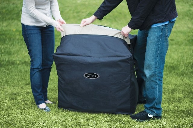 Intex PureSpa Portable Hot Tub - fantastičan prenosivi bazen sa ugrađenim grejanjem vode i masažom. Namenjen za 4 osobe. Ima 120 mlaznica za vodu koje omogućavaju fenomenalnu relaksaciju. Fiber-Tech™ konstrukcija pruža maksimalni komfor i podršku. Upravljanje je olakšano na kontrolnom panelu. Poseduje i sistem grejanja i filtracije kao i prekrivač koji smanjuje gubitak toplote. Pokrivač ima sigurnosne brave i ugrađeni su kaiševi za privezivanje pokrivača.Napravljen je od kvalitetnog troslojnog materijala koji je otporan na bušenje.