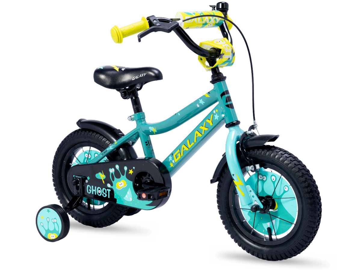 Bicikl dečiji GALAXY GHOST 12" je najmanji model bicikla namenjen deci koja tek uče da voze bicikl. Ovo je prvi bicikl za decu uzrasta od 2 do 4 godine visine od 80 do 95 cm. Bicikl dečiji GALAXY GHOST 12" se od ostalih sličnih modela razlikuje po svom posebno dizajniranom niskom ramu koji detetu omogućava lako penjanje na bicikl. Plastični lancobran koji oblaže ceo lanac sprečava uplitanje odeće ili noge u lanac sprečavajuči mogućnost povreda.