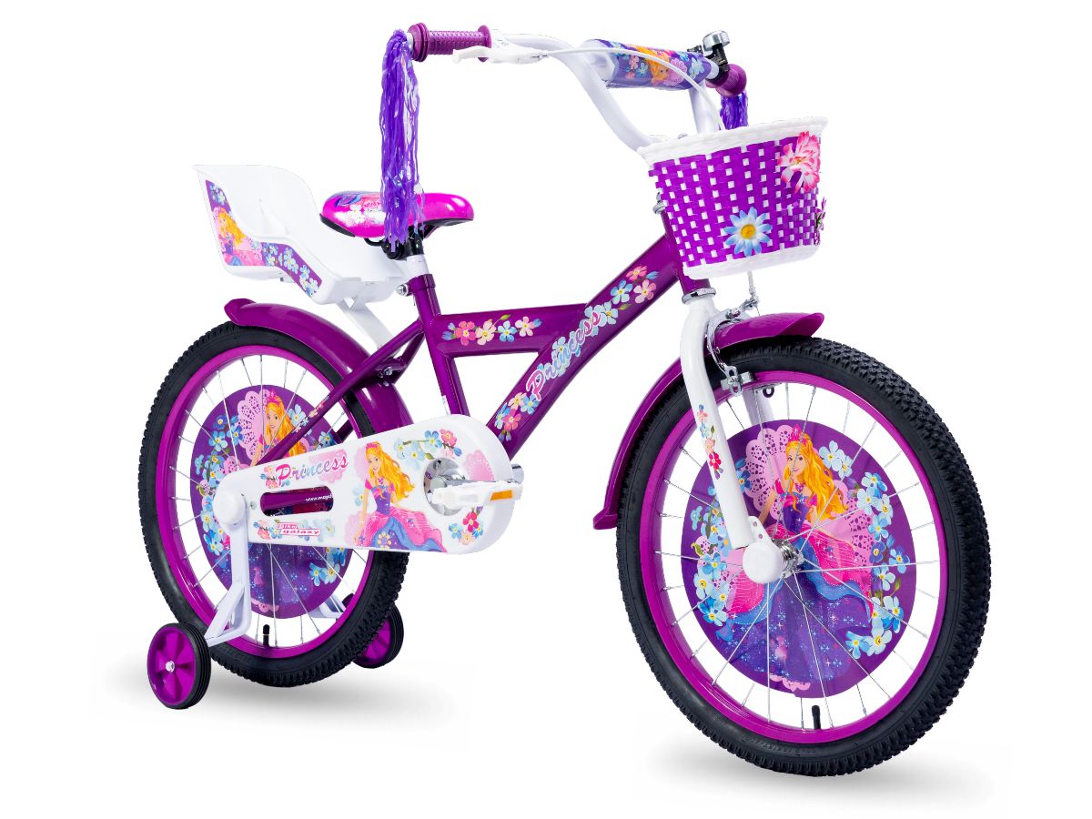 Bicikl dečiji GALAXY PRINCESS 20" je bicikl za devojčice pogodan za decu koja već znaju da voze bicikl. Dečiji bicikl GALAXY PRINCESS je opremljen korpom za sitnice, postavljenom na volanu i sedištem za omiljenu lutku na gepeku bicikle, kao i praktičnim zvoncetom. Prednje kočnice su V kočnice, sa zgodno postavljenom ručkom na upravljaču, a zadnje kočnice su kontra.