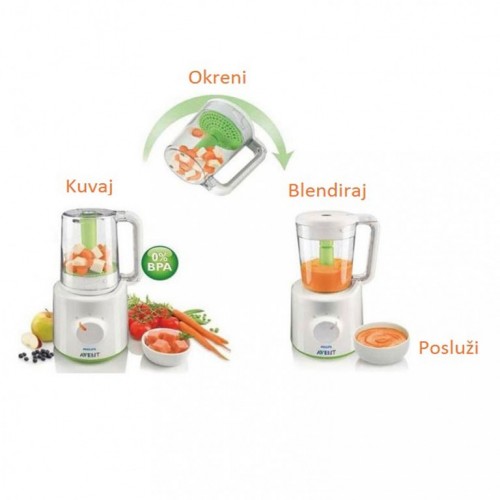 Kombinovani aparat za kuvanje i miksovanje hrane za jednostavnu pripremu obroka .Kuvanje na pari i jednostavno miksanje sadržine. Bez nereda i bezpotrebnog bacanja hrane.