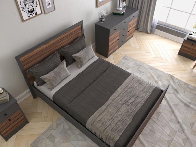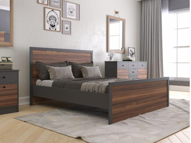 Bračni krevet Paris * Dimenzije: Za dušek 200 x 160 cm Bračni krevet Paris izrađen je od visokokvalitetne iverice 18 mm presvučene melaminskom folijom u boji drvnog dezena kombinovanog sa antracit sivom,sve okantovano abs trakom. Estetski se uklapa u svaki prostor svojim dizajnom i kombinacijom boja. Proizvod je napravljen od E1 sertifikovanih sirovina koje ne sadrže kancerogene supstance. * ukoliko želite drugu dimenziju bračnog kreveta u zavisnosti od potrebnog dušeka možete nas kontaktirati - imamo u ponudi
