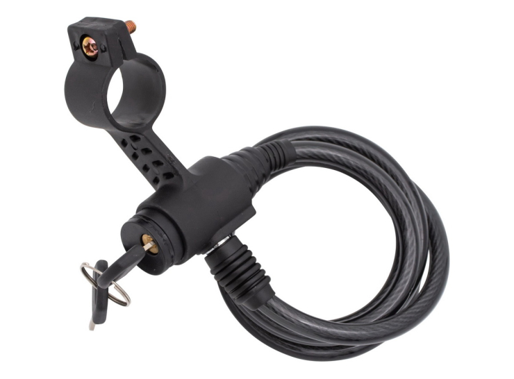 Funkcionalna crna zaštitna brava za bicikl, 3120103, sa čeličnom sajlom i držačem na ključ. Sa ovom bravom za bicikl, vaš bicikl je zaštićen.