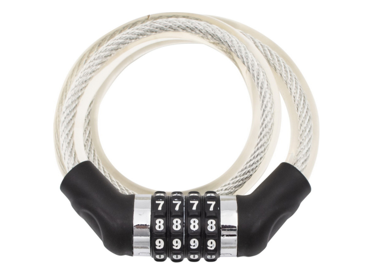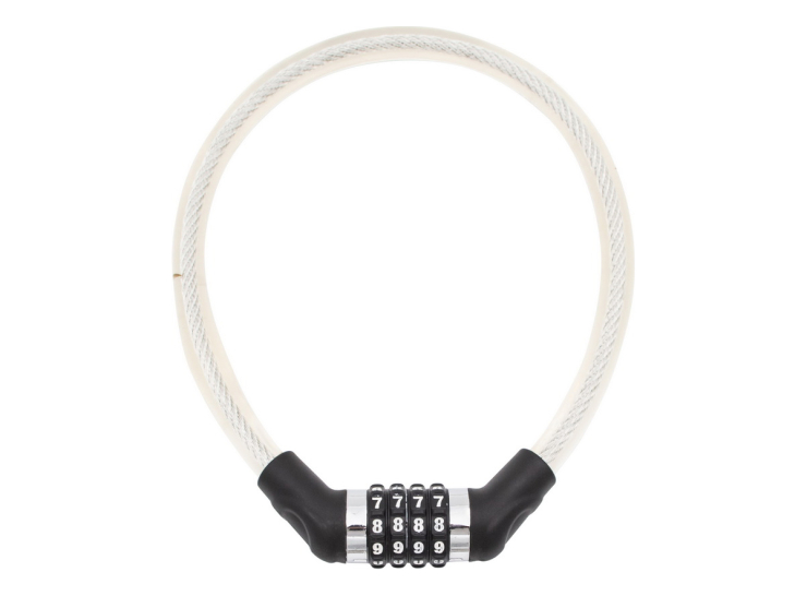Brava za bicikl, 3121013, sa čeličnom sajlom obloženom od plastičnih materijala koja štite bicikl od grebanja, cilindar je na šifru koja podrazumeva kombinaciju 4 cifre.