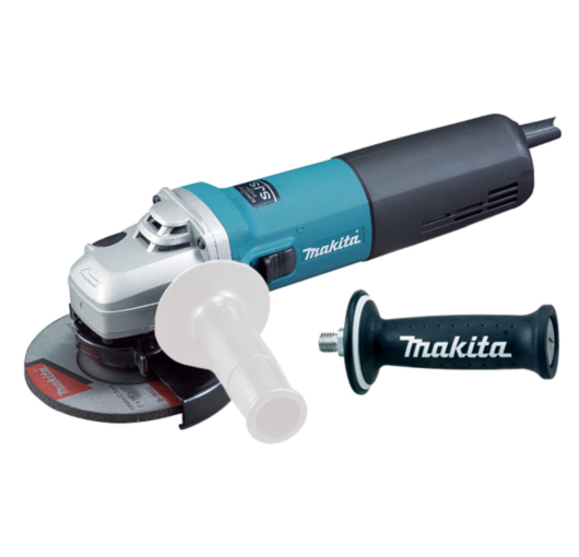 Sistem protiv ponovnog pokretanja sprečava slučajno uključenje i kada je brusilica uključena u struju, sa uključenim prekidačem. Super Joint System (SJS) obezbeđuje dodatnu bezbednost i duži vek alata. Okretno kućište može da se postavlja na svakih 90°. Ergonomski dizajnirana drška, sa gumiranim rukohvatom. Vijci koji se ne odvijaju, koriste se za pritezanje kućišta za ležište u kućište reduktora. Ugaona brusilica Makita ima ugrađen prekidač koji je povoljno lociran za lako rukovanje sa jednom rukom. Povećano zaptivanje od isticanja masti zahvaljujući gumenom O prstenu koji je čvrsto ugrađen u kućište reduktora. Anti-restart funkcija (NVR prekidač).