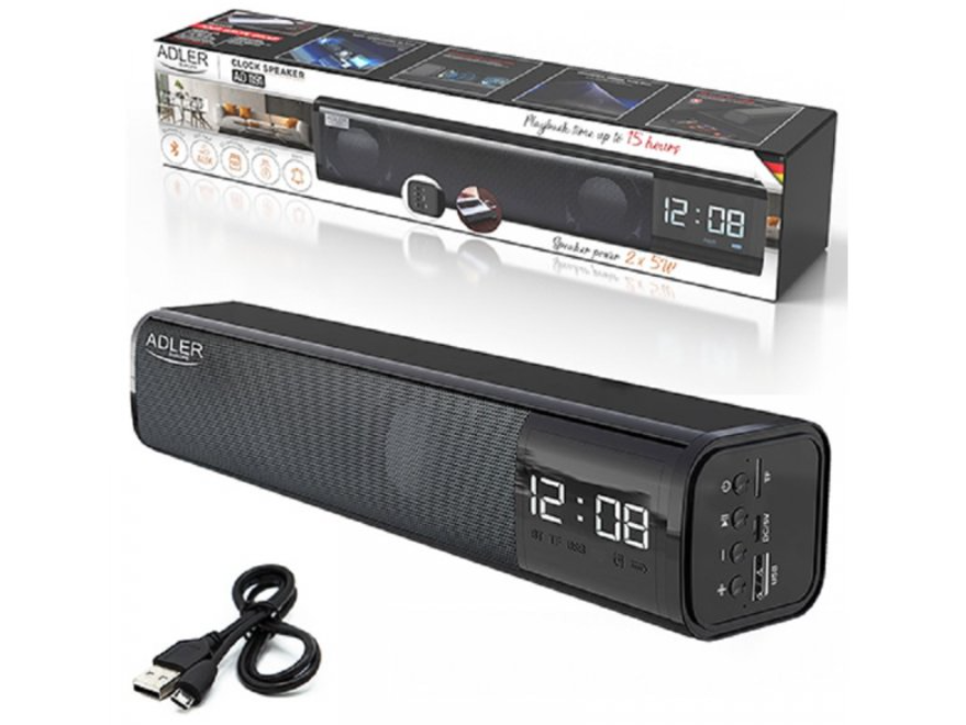 Budilnik sa alarmom sd usb i zvučnikom 2x5w Adler ad1191