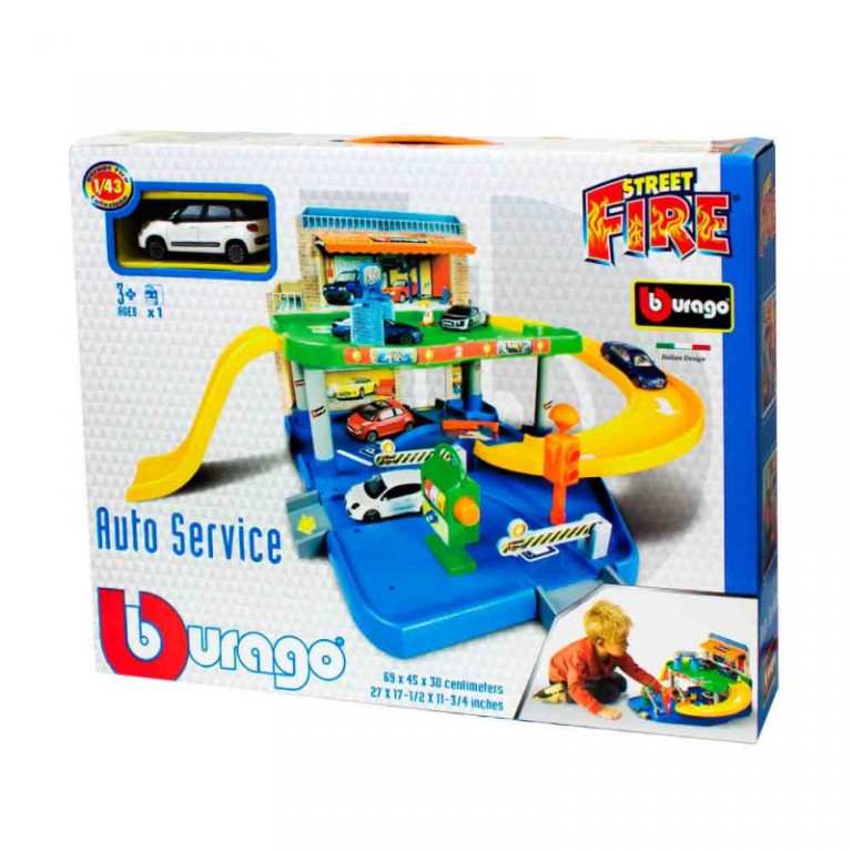 - Komplet sadrži garažu, semafor, rampu, lift za automobile, put sa preprekama, auto perionicu i benzinsku pumpu.