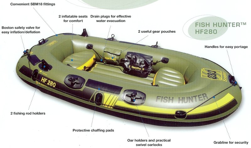 Sevylor Fish Hunter HF280 je pouzdan proizvod sa dugom tradicijom. Napravljen od extra duty virgin PVC-a koji vam obezbeđuje potpuno sigurnost. Pravi izbor za pecanje, lov ili jednostavno uživanje na reci. Strukturu čine: 1 glavna komora, 1 bezbednosna komora, 2 bočne komore i pod. Pogodan za direktno postavljane elektromotora Sevylor SBM 18