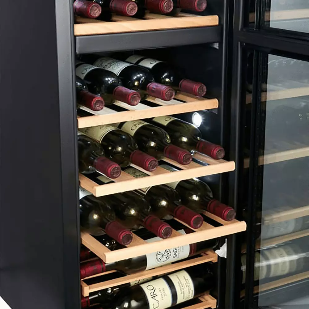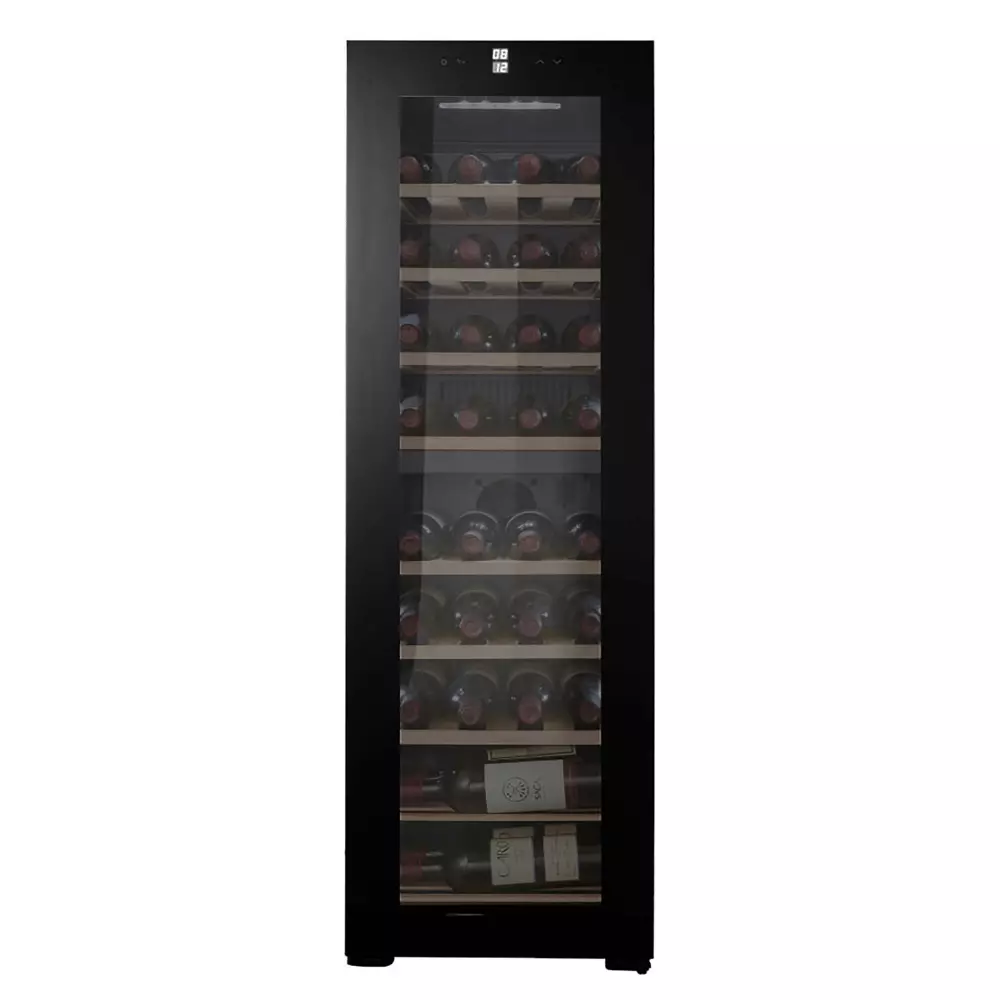Samostojeća vinska vitrina CAVIN NC-39B je elegantno i prostrano rešenje za ljubitelje vina koji žele da čuvaju veliku kolekciju u optimalnim uslovima. Sa dve temperaturne zone (5–18 °C na gornjem delu i 5–18 °C na donjem delu), omogućava odvojeno skladištenje različitih vrsta vina u idealnim uslovima. Vitrina može da primi do 39 boca (0,75 l Bordo), ima crna staklena vrata sa UV zaštitom i belo LED osvetljenje, što obezbeđuje sofisticiran izgled i preglednost. Pouzdan kompresorski sistem hlađenja obezbeđuje stabilnu temperaturu i bezbedno čuvanje vaše kolekcije vina.2. Zašto odabrati ovaj model